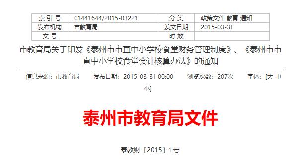 市教育局关于印发《泰州市市直中小学校食堂财务管理制度》、《泰州市市直中小学校食堂会计核算办法》的通知